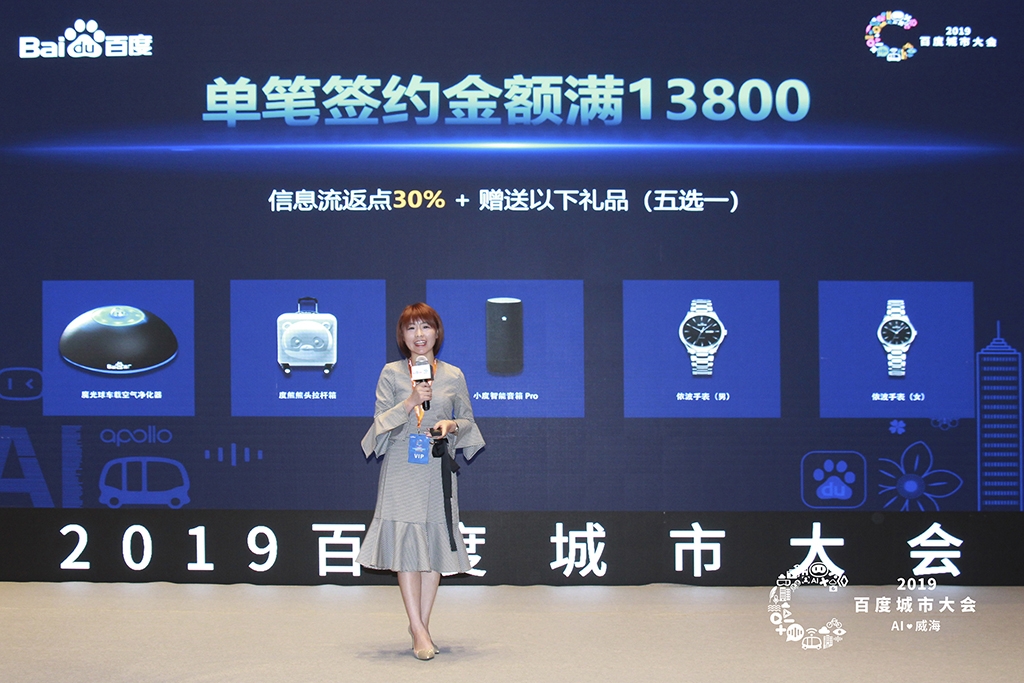 大会开篇,商至信集团中小事业部兼推广运营事业部总经理邱亚坤发表致辞,她表示:本次百度城市大会所展示的不单是城市信息化,更是利用人工智能技术重塑产业发展、商业升级,为城市营造更广的商业发展空间,实现城市经济与社会发展的深度融合。面对日新月异的市场环境,我们将继续整合更智能、更前沿的互联网营销手段,帮助威海企业驰骋在互联网的赛道上,实现企业的升级转型发展。